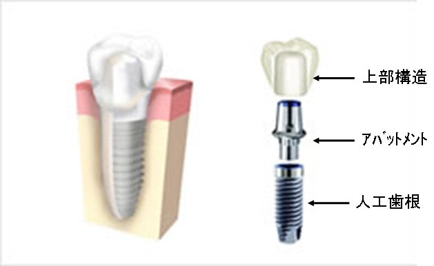 「インプラント」とは、失ってしまった天然歯の替わりに、人工の歯根を顎の骨に埋め込み、その上に人工の歯を装着する治療法です。従来の入れ歯とは違って、健康な歯を削る必要もなく、固定性であるためガタついたりせず、自分の歯と同じように“食べる・話す”ことが出来るようになります。歯を失ってしまい噛めない、入れ歯が合わない・わずらわしいなどの方に対し、インプラント(人工歯根を植える)治療を取り入れています。また、メンテナンスにも力を入れておりますのでご相談ください。